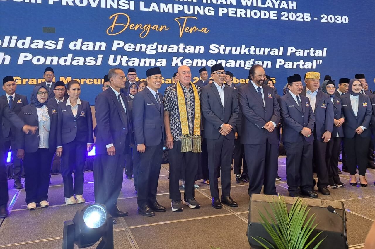 BANDAR LAMPUNG — Ketua Umum Partai NasDem Surya Paloh resmi melantik Dr. (H.C.) Drs. H. Herman HN, MM sebagai Ketua DPW Partai NasDem Provinsi Lampung periode 2025–2029.