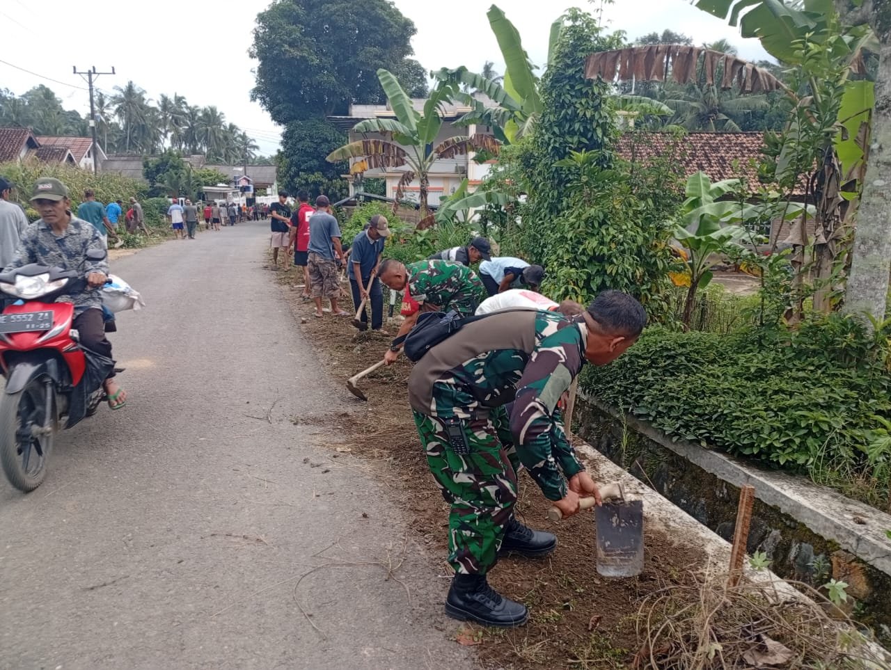 TANGGAMUS – Kodim 0424/Tanggamus melalui Koramil 424-02/Wonosobo bersama instansi terkait dan masyarakat melaksanakan Karya Bhakti Teritorial Prima berupa pembersihan bahu jalan serta normalisasi drainase di Pekon Tugu Papak, Kecamatan Semaka, Kabupaten Tanggamus, Minggu (21/9/2025).